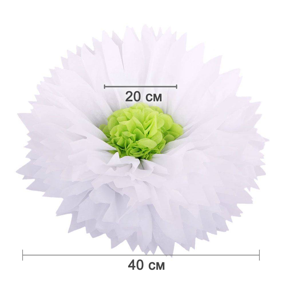 Бумажный цветок 40 см белый+салатовый