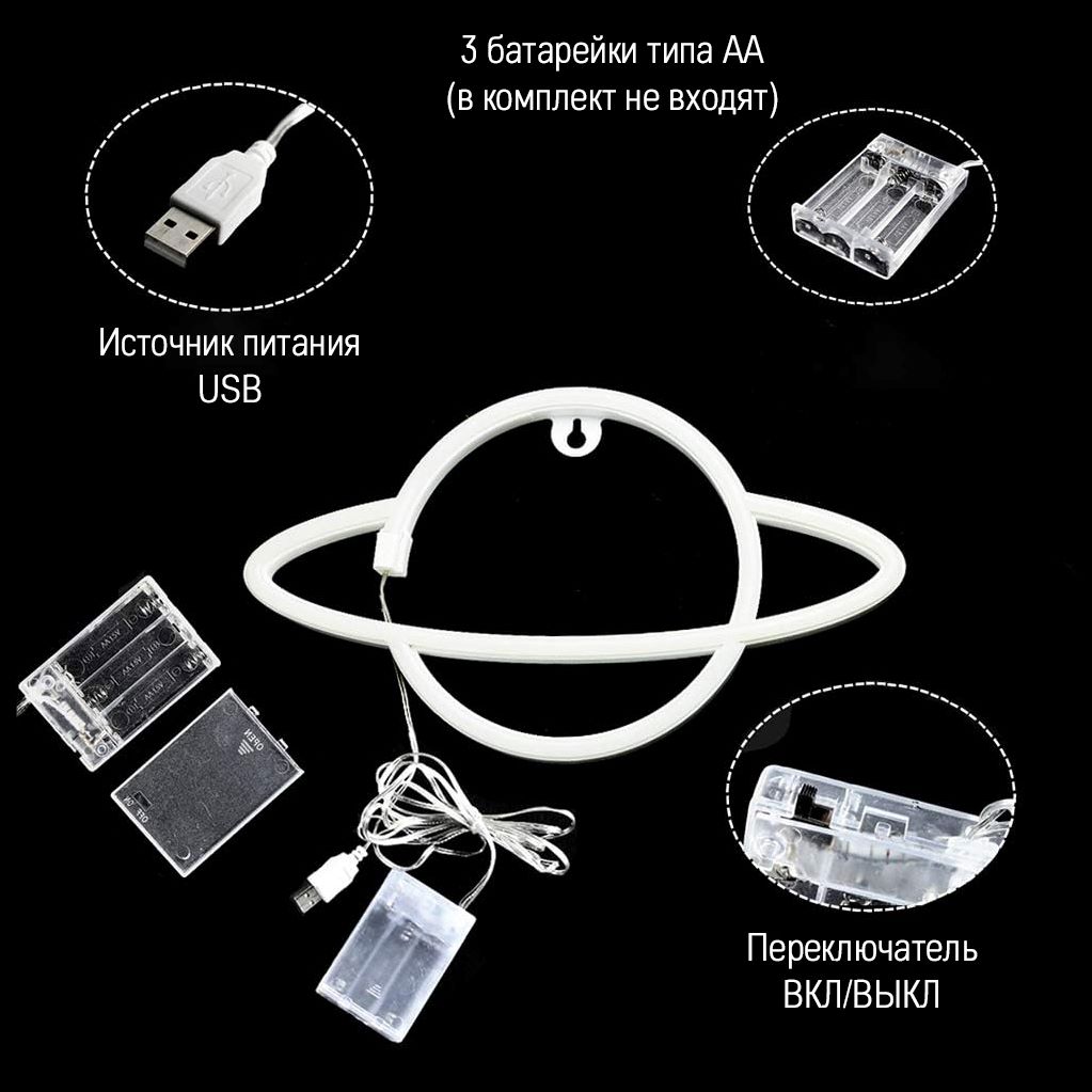 Неоновая подвеска "Сатурн" 30 х 17,5 см, от батареек и USB, розовый+желтый
