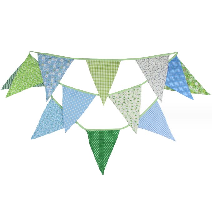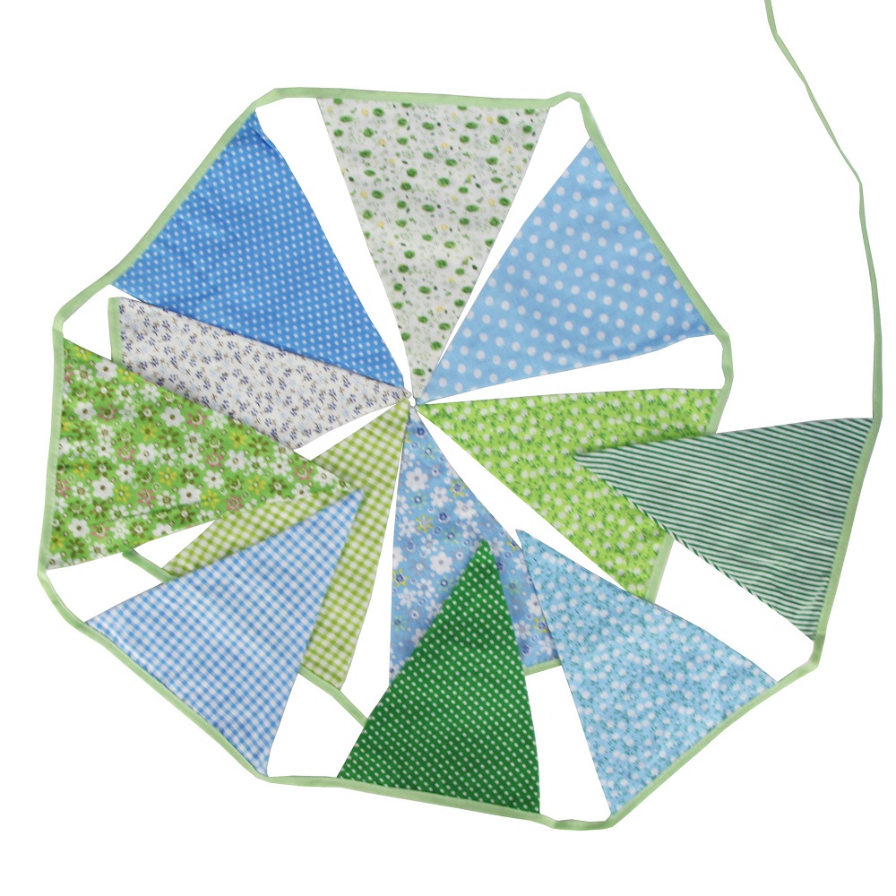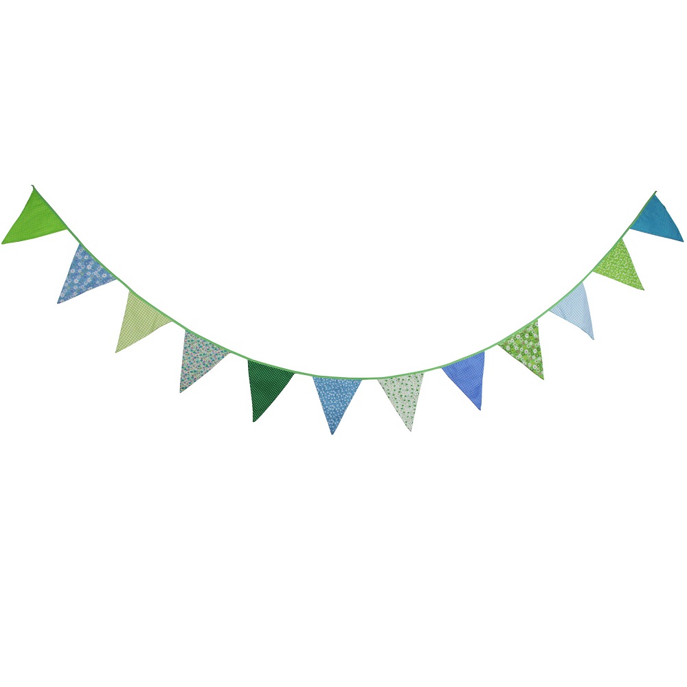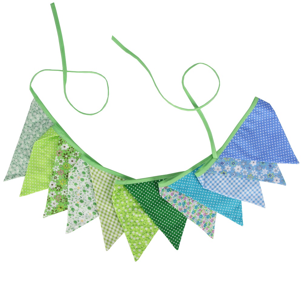 Гирлянда состоит из 12 флажков. Расстояние между флажками - 6 см, общая длина составляет 4 м.