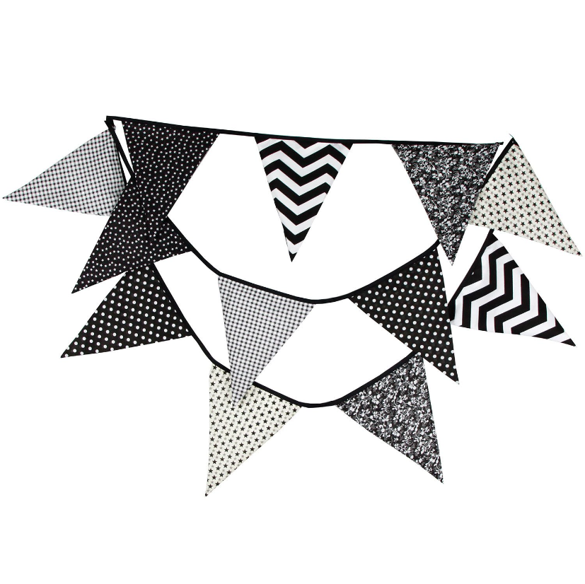 Гирлянда состоит из 12 флажков, расстояние между флажками 6 см, общая длина составляет 4 м.