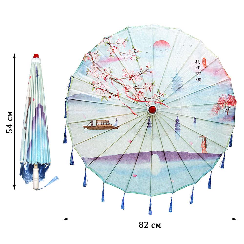 Китайский тканевый зонтик цветочный с кисточками 82х54см, №2
