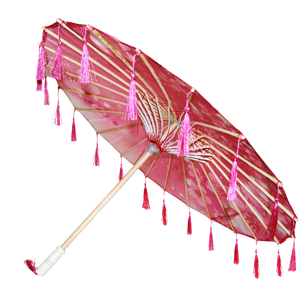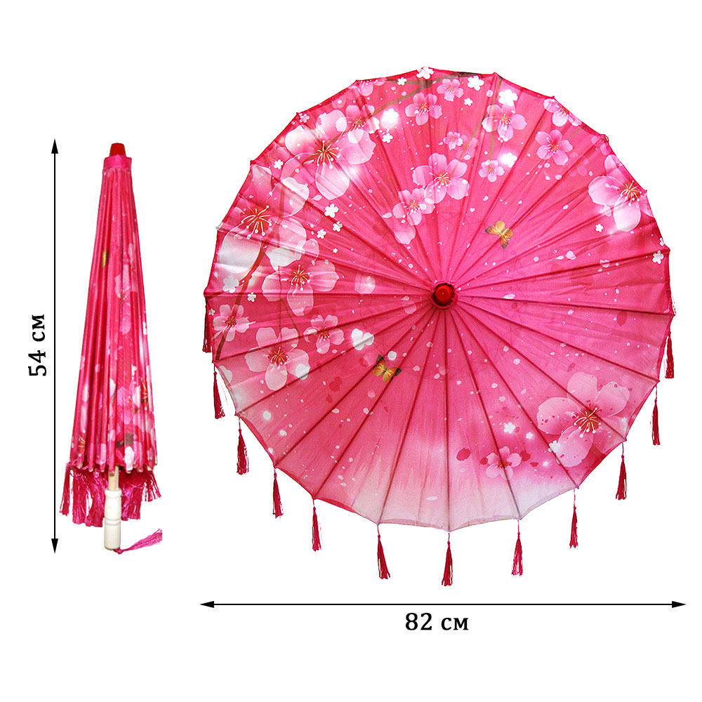 Китайский тканевый зонтик цветочный с кисточками 82х54см, №5