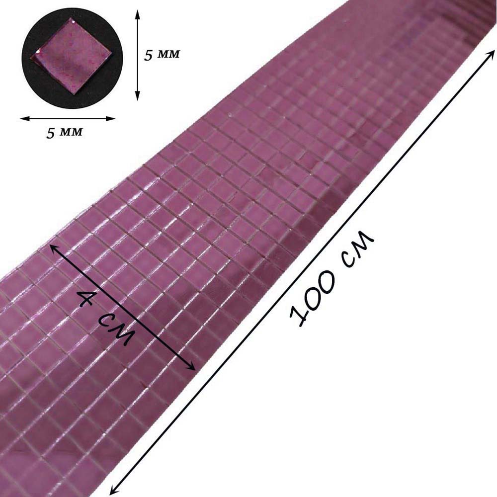 Лента самоклеящаяся зеркальная мозаика стекло, 4см х 1м 5х5мм, светло-розовый