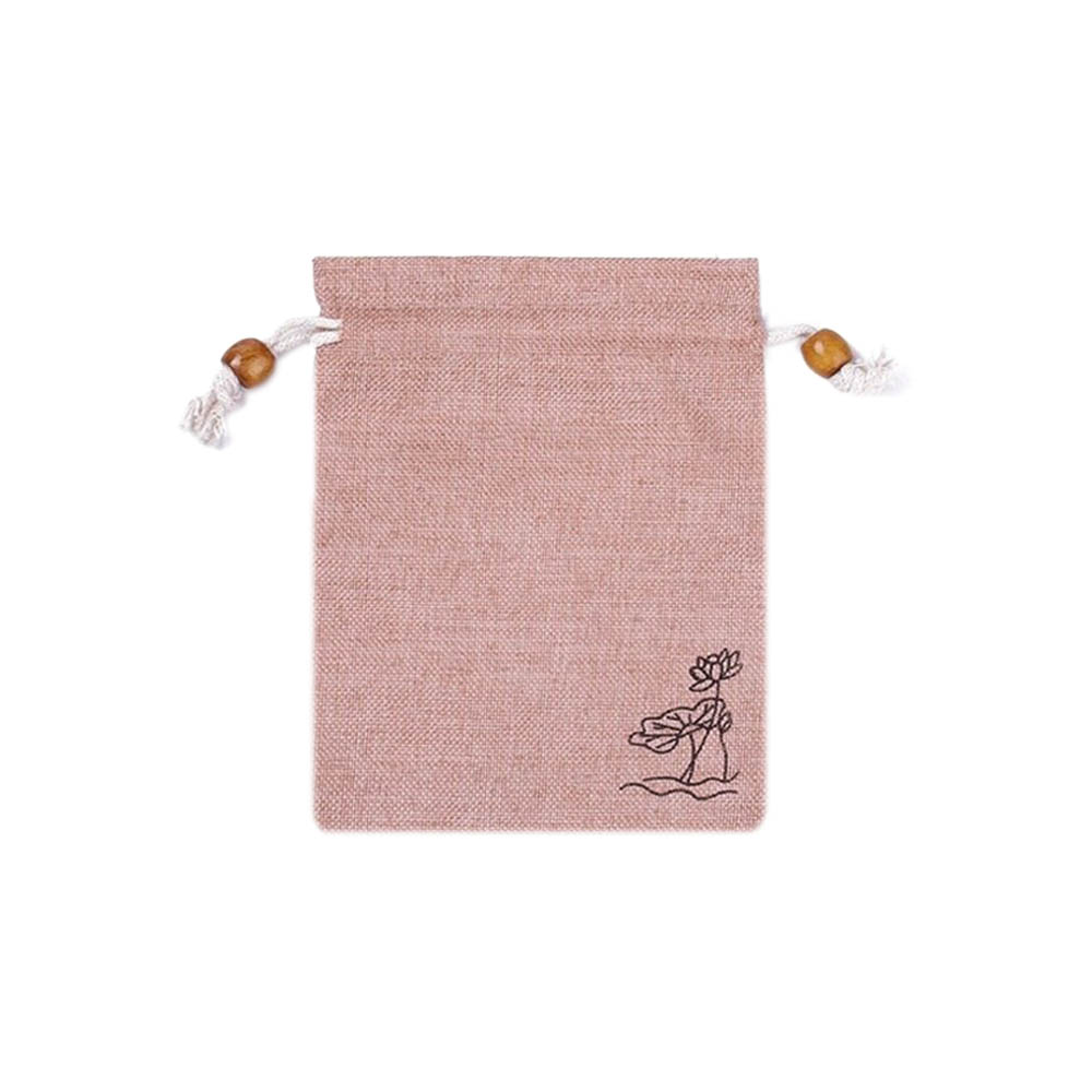 Мешочек из искусственного льна с орнаментом 15х12 см, нежно-розовый