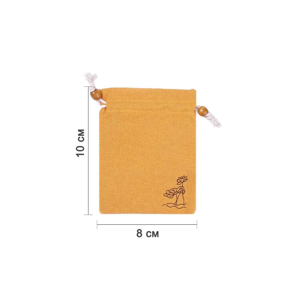 Мешочек из искусственного льна с орнаментом 8х10 см, желтый