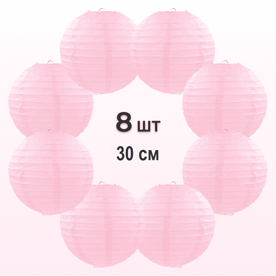 Комплект подвесные фонарики 30 см х 8 шт, розовый