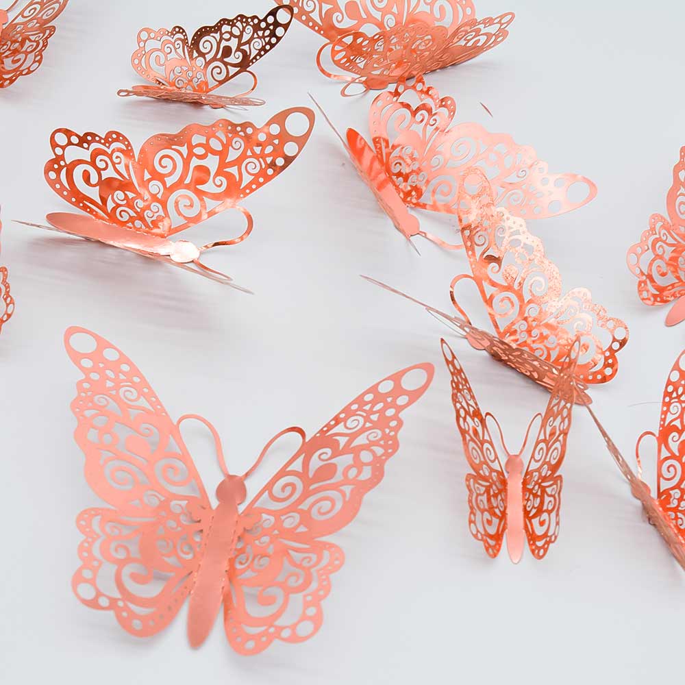 Наклейки Бабочки № 17 бумага металлик 12 шт розовое золото