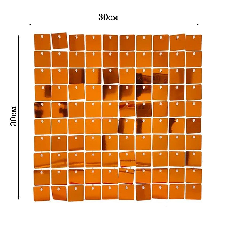 Панель с пайетками для фотозоны 30х30см, оранжевый
