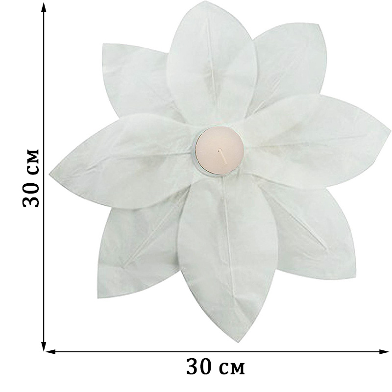 Плавающий фонарик Лотос 30х30 см — красивый декоративный элемент для создания свечных композиций. Центральное отверстие позволяет удобно установить чайную свечу, создавая мягкое и уютное освещение.