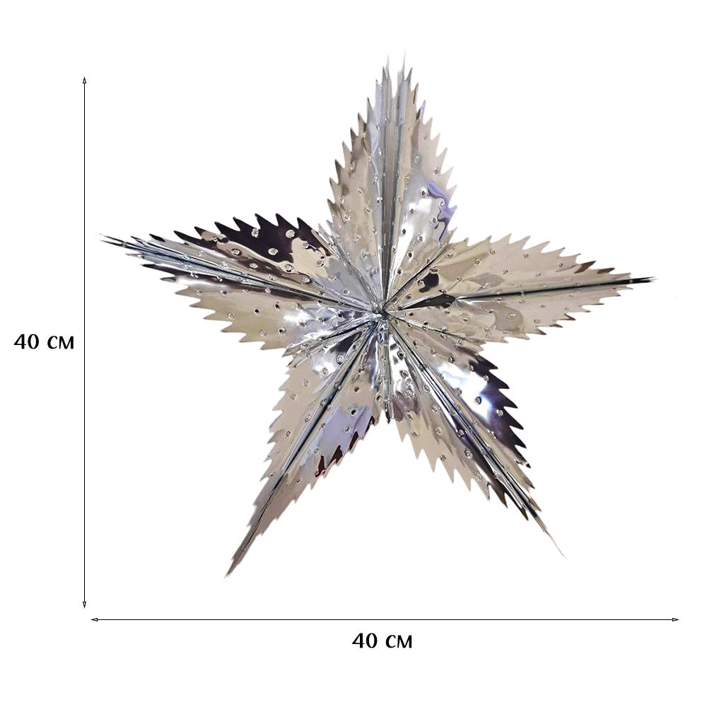 Звезда фольгированная с перфорацией 40 см пятиконечная, серебро