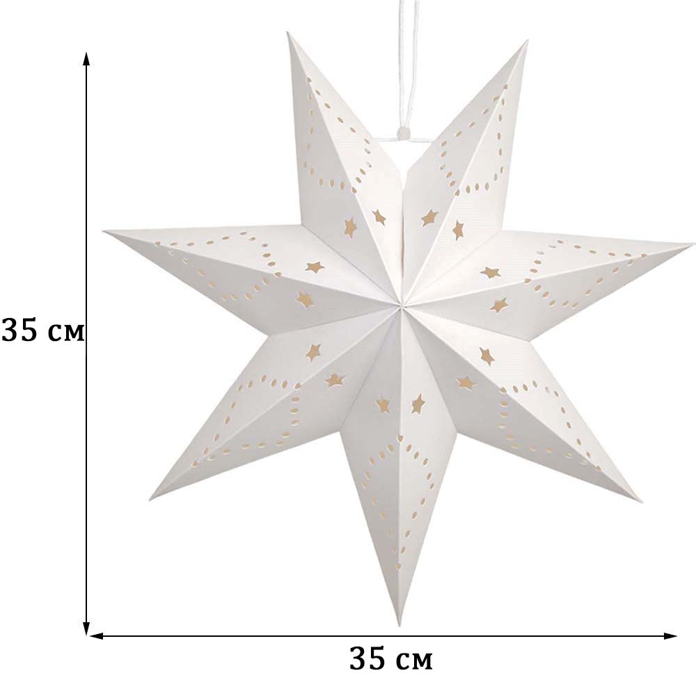 Звезда семиконечная бумажная 35 см, Звезды и точки, белый